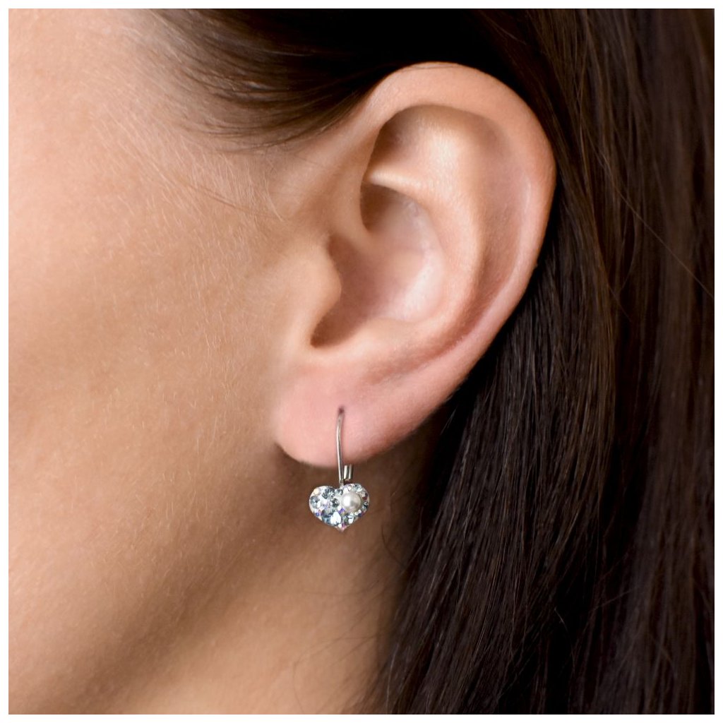 Zháňate darček k Valentínovi alebo len tak z lásky? Obdarujte svoju milovanú originálnymi striebornými náušnicami v tvare srdca so Swarovski kryštálmi!Visiace náušnice 31125.9 v tvare srdca sú vyrobené zo striebra o rýdzosti 925/1000 s povrchovou úpravou ródiom a sú bohato zdobené malými trblietavými kryštálmi Swarovski v modrej farbe. Náušnice navyše zdobí ešte Swarovski perlička v bielej farbe. Náušnice zapnete na klapku , ktorá ich spoľahlivo ochráni proti nechcenej strate. Do náušníc nie je pridaný nikel , a tak ich bez obáv môžu nosiť aj alergici.