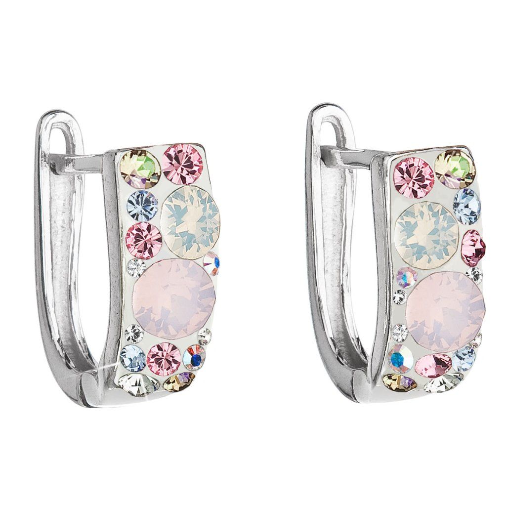Parametre strieborných visiacich náušníc s kryštálmi Swarovski mix farieb polkruh 31123.3 magic rose