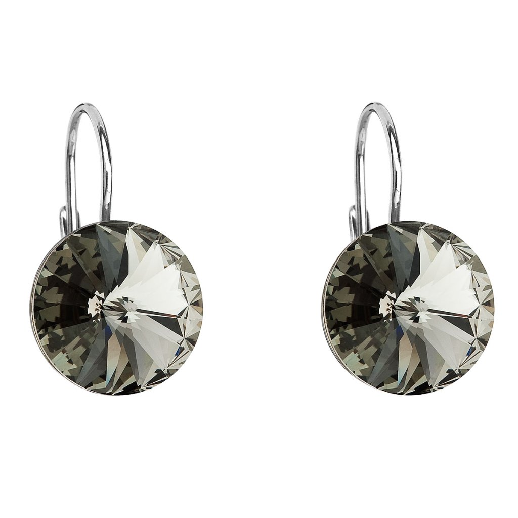 Strieborné náušnice visiace s kryštálmi Swarovski sivé okrúhle 31106.3
