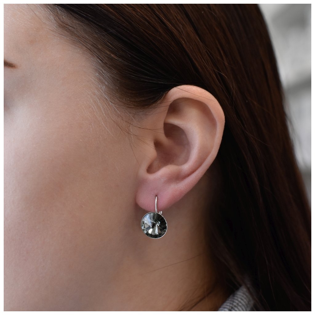 Parametre strieborných visiacich náušníc s kryštálmi Swarovski sivé okrúhle 31106.3