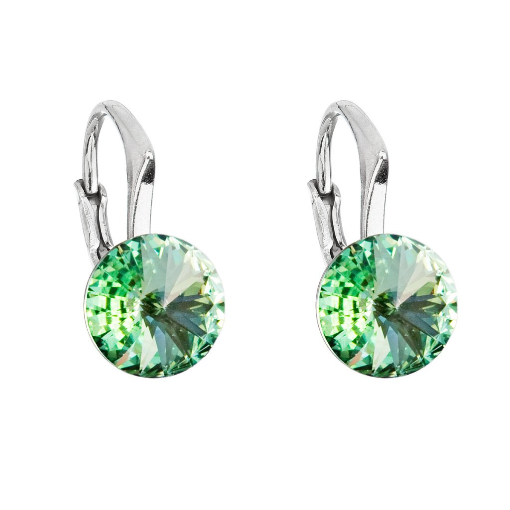 Strieborné náušnice visiace s kryštálmi Swarovski zelené okrúhle 31229.3 chrysolite