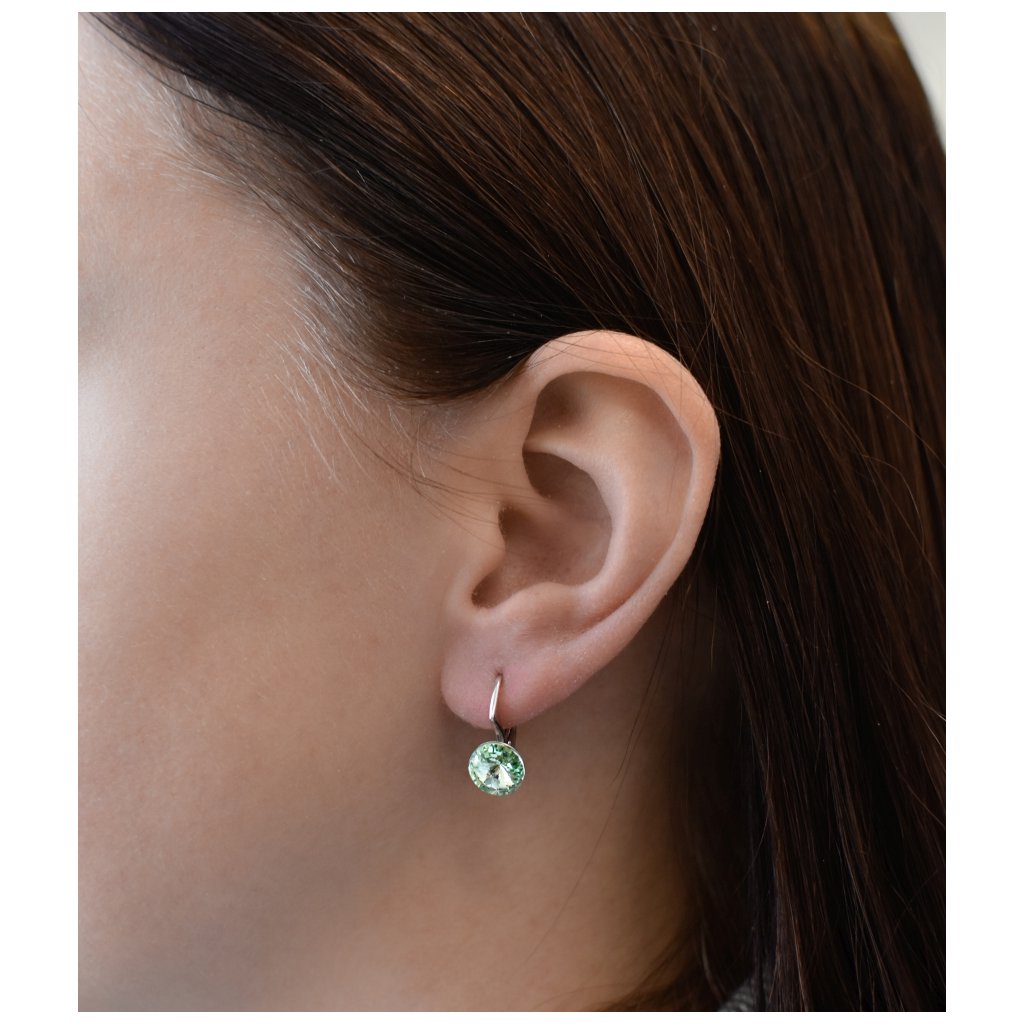 Parametre strieborných visiacich náušníc s kryštálmi Swarovski zelené okrúhle 31229.3 chrysolite