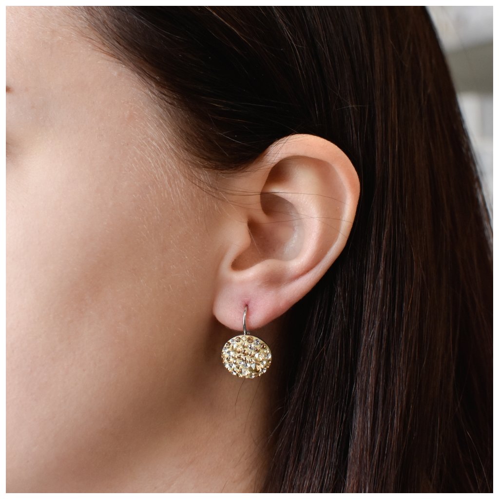 Parametre strieborných náušníc visiace s kryštálmi Swarovski zlaté okrúhle 31176.5 gold