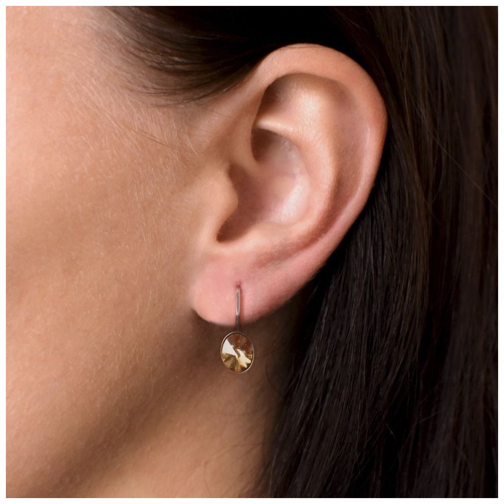 Strieborné oválne visiace náušnice 31276.5 sú osadené jedným väčším zlatým Swarovski kryštálom. Zlatá farba kryštálu dopĺňa rhodiované striebro 925/1000, z ktorého sú náušnice vytvorené. Rhodium šperk chráni pred zažltnutím aj sčernením. Zároveň ochránia náušnice 31276.5 proti poškriabaniu. Šperk neobsahuje žiadny nikel, je teda vhodným darčekom aj pre alergikov.