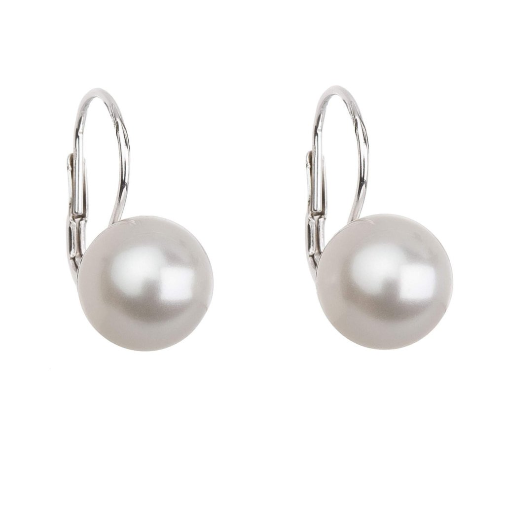 Strieborné náušnice visiace s perlou Preciosa biele okrúhle 31143.1
