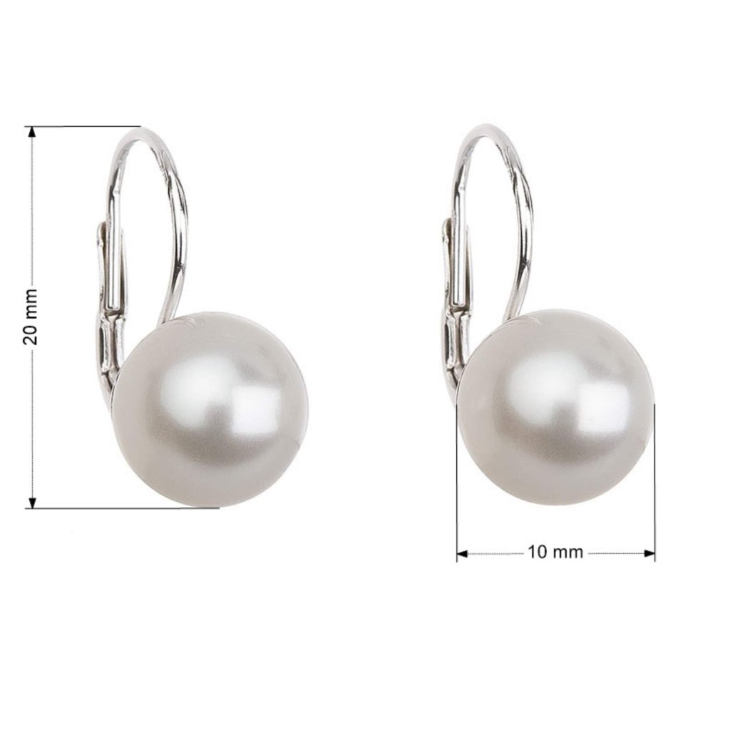 Parametre strieborných visiacich náušníc s Preciosa perlou biele okrúhle 31143.1