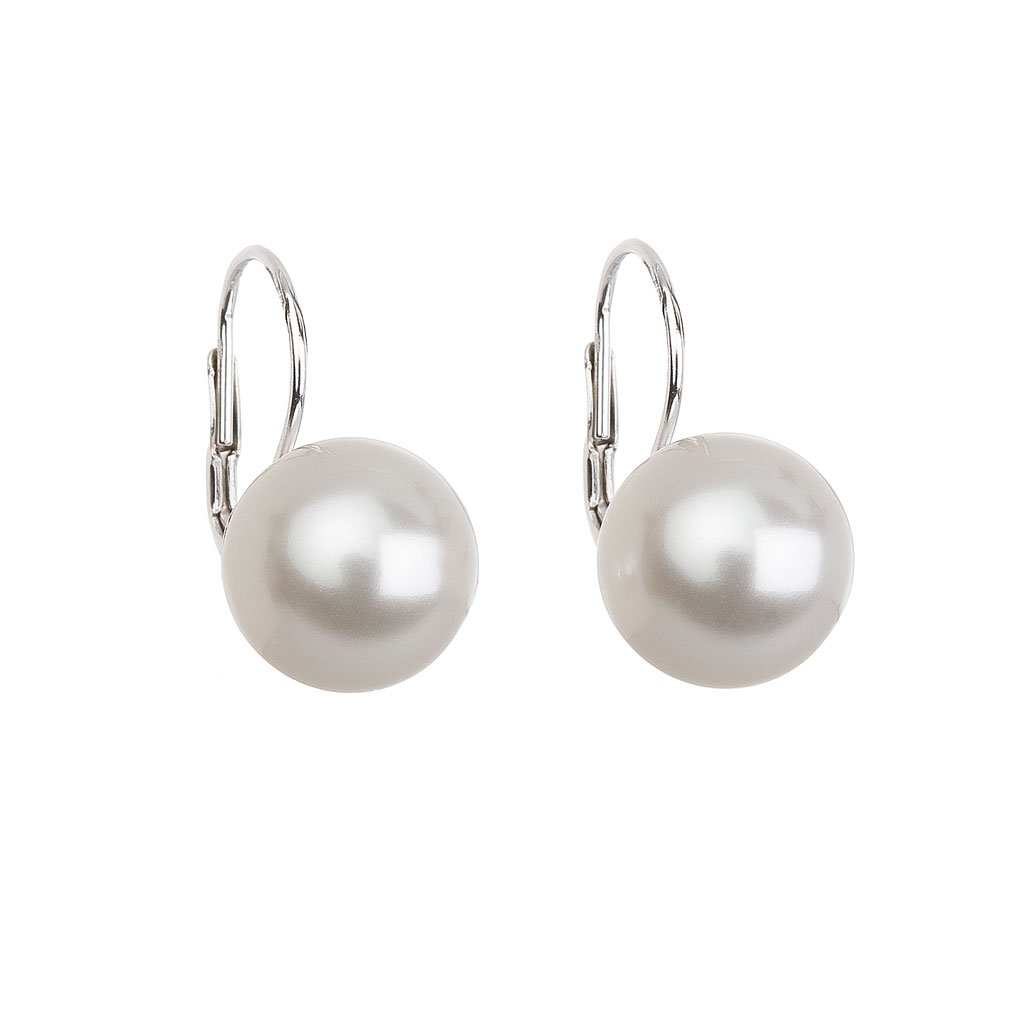 Strieborné náušnice visiace s perlou Preciosa biele okrúhle 31144.1