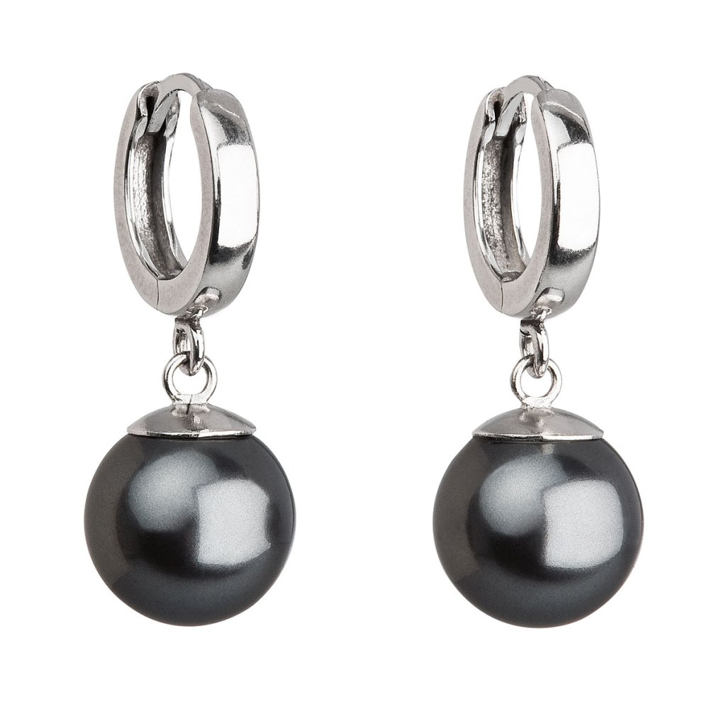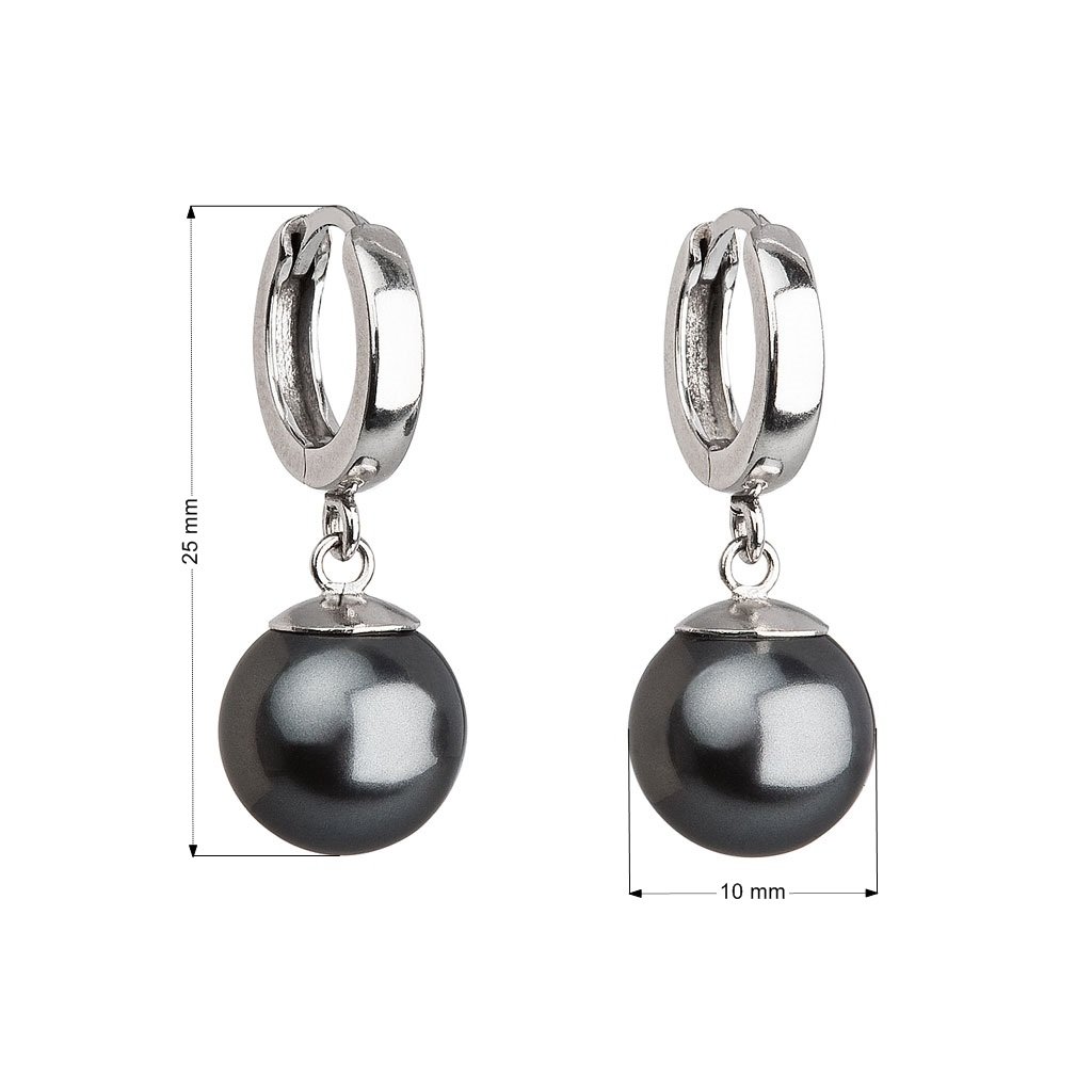 Parametre strieborných visiacich náušníc s perlou Swarovski sivé okrúhle 31151.3