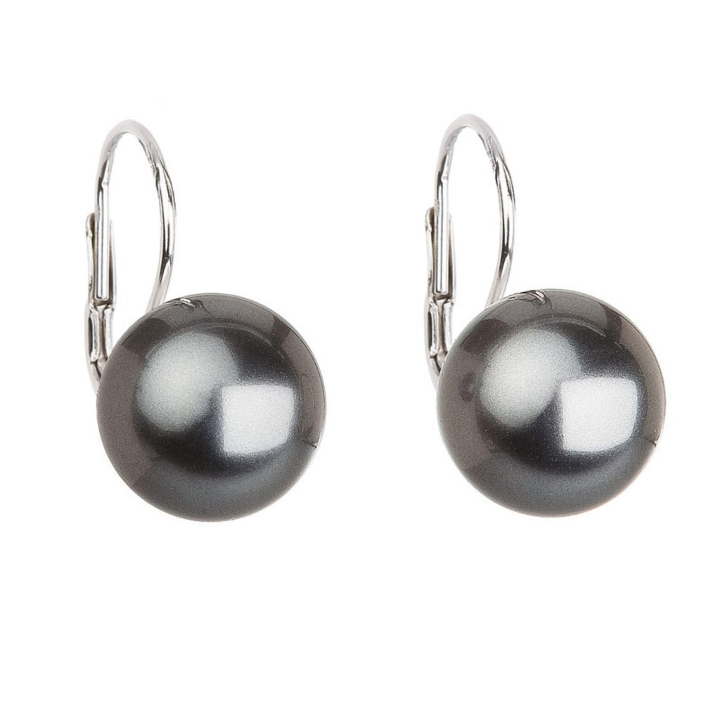 Strieborné náušnice visiace s perlou tmavo šedou okrúhle 31144.3 dark grey
