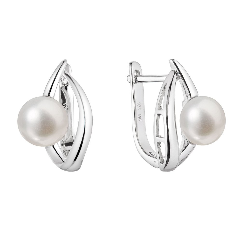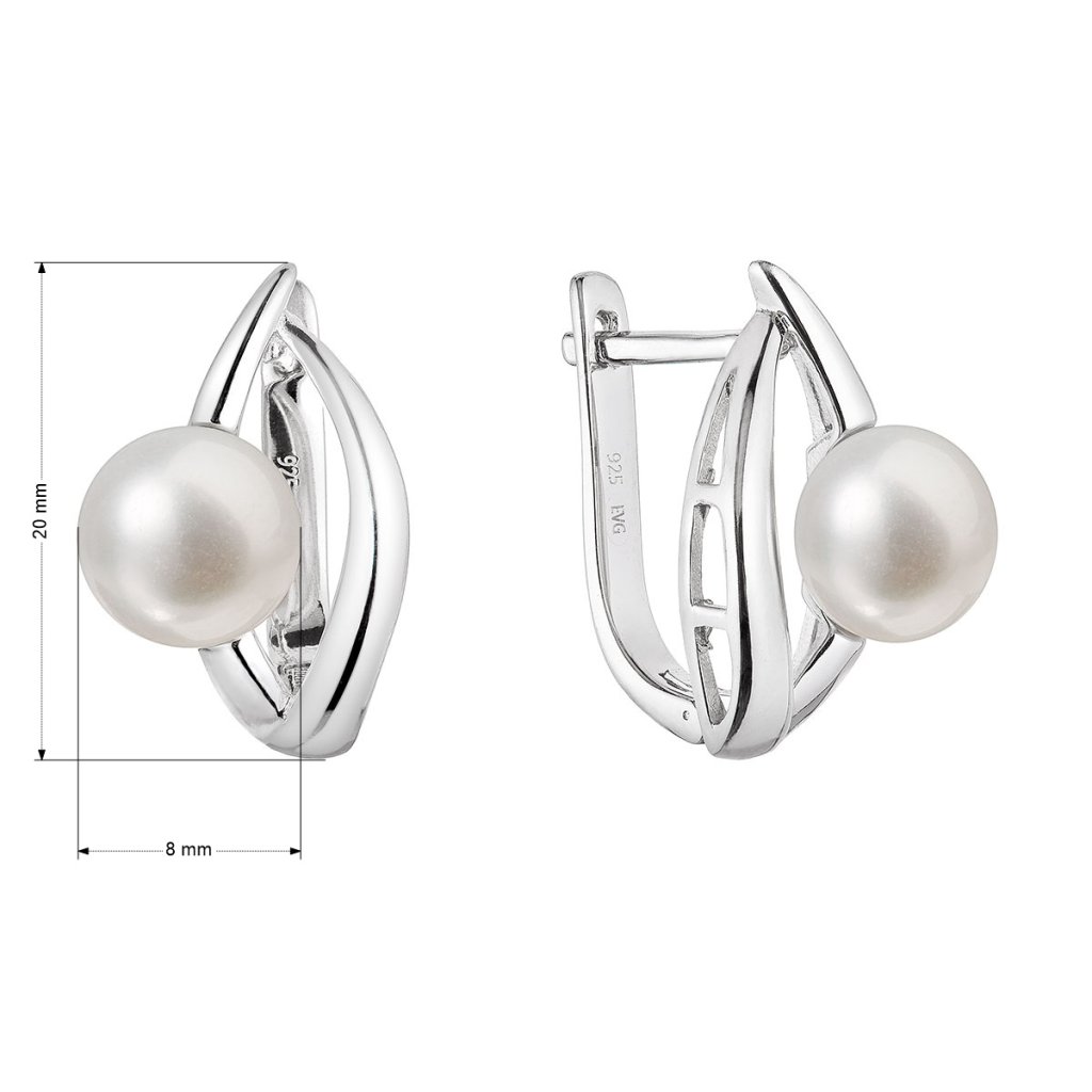 So striebornými náušnicami moderného dizajnu s pravou riečnou perlou budete atraktívna za každej situácie.Náušnice 21100.1B sú vyrobené zo striebra o rýdzosti 925/1000 vrátane povrchovej úpravy ródiom. Ródium ochráni šperk proti sčerneniu, zožltnutiu i poškriabaniu. Zaujímavý tvar zdobí biela riečna perla s priemerom 8 mm a kvality AA . Šperk neobsahuje prídavok niklu, a tak ho môžu nosiť aj ľudia náchylní na alergické reakcie. Náušnice majú zapínanie na ruský patent .