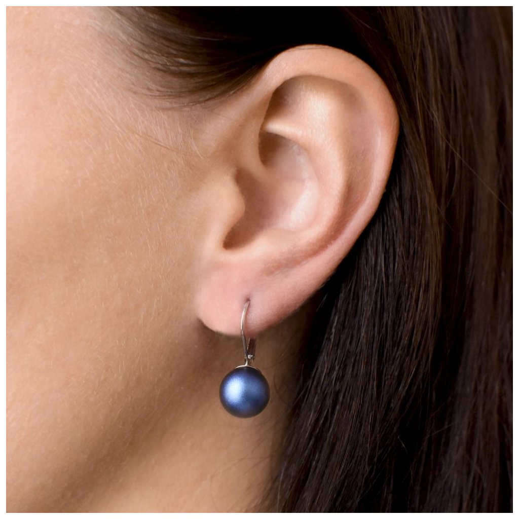 Strieborné náušnice visiace s tmavo modrou matnou Swarovski perlou 31143.3