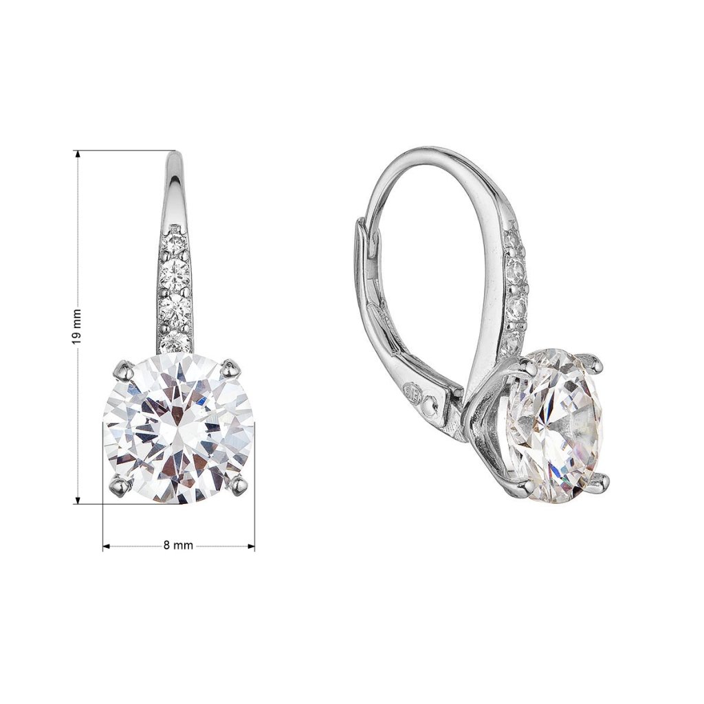 Strieborné náušnice v ktorých veľmi elegentne vynikajú biele zirkóny.Náušnice vyrobené zo striebra o rýdzosti 925/1000 zaujmú predovšetkým žiarivými zirkónmi. Šperk neobsahuje prídavok niklu , a tak ho môžu nosiť aj ľudia náchylní k alergickej reakcii. Náušnice majú zapínanie na klapku, ktorá ich ochráni proti nechcenej strate.