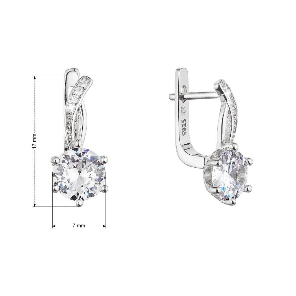 Bohato zdobené visiace náušnice sú elegantným a výrazným doplnkom nielen pre slávnostné udalosti.Visiace náušnice 11461.1 v tvare polkruhu sú vyrobené zo striebra o rýdzosti 925/1000 s povrchovou úpravou ródiom a sú zdobené mnohými zirkónmi bielej farby . Vďaka ródiu je šperk odolný proti sčernaniu, zožltnutiu alebo poškriabaniu. Náušnice zapnete na ruský patent , ktorý ich ochráni proti nechcenej strate. Keďže do náušníc nie je pridaný nikel , môžu ich bez obáv nosiť aj alergici.
