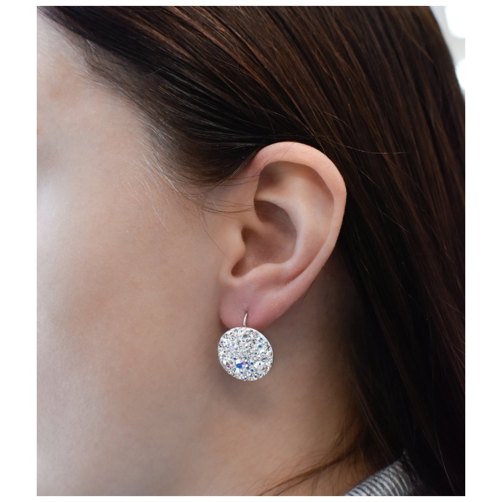 Parametre strieborných okrúhlych visiacich náušníc kôstok so Swarovski kryštálmi ab efekt 31161.2