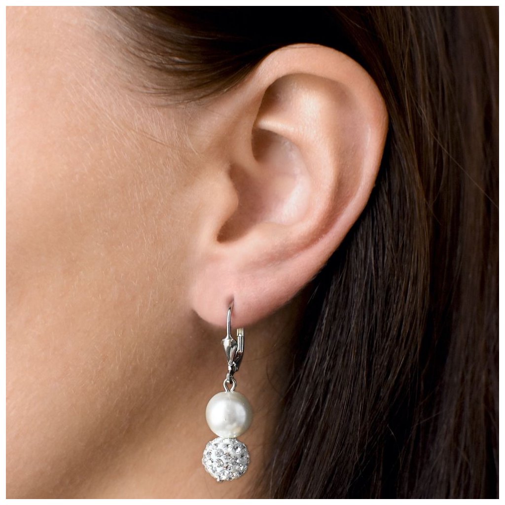 Lámete si hlavu nad tým, čím vhodne doplniť váš slávnostný outfit na ples alebo rodinnú večeru? Stavte na výrazné a originálne šperky! Čo tak dlhé visiace náušnice zložené z bielej perly a Swarovski kryštálov?Náušnice 31155.1 sú vyrobené zo striebra o rýdzosti 925/1000 vrátane povrchovej úpravy ródiom a skladajú sa z bielej okrúhle syntetické perly a guličky bohato vysadené bielymi Swarovski kryštálmi. Náušnice v dĺžke 40 mm sa zapínajú na klapku a keďže neobsahujú žiadny nikel , môžu ich nosiť aj alergici.