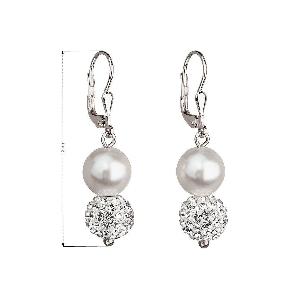 Strieborné náušnice visiace so syntetickými perlami a kryštálmi Swarovski biele okrúhle 31155.1
