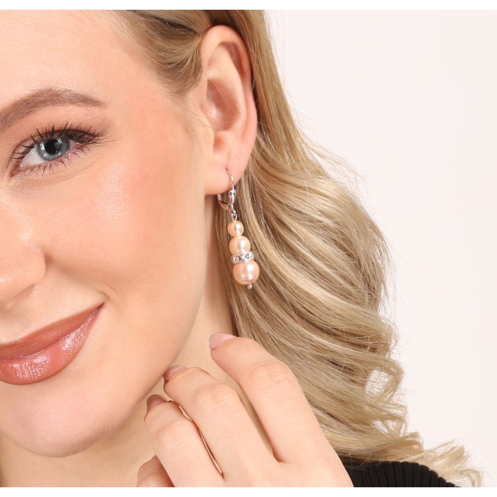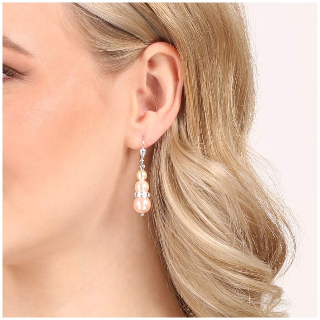 Ozdobte sa visiacimi perlovými náušnicami so Swarovski kryštálmi 31150.3 a garantujeme vám, že na plese budete neodolateľná!Dámske visiace náušnice 31150.3 sú vyrobené zo striebra o rýdzosti 925/1000 vrátane povrchovej úpravy ródiom a skladajú sa z troch ružových rôzne veľkých okrúhlych syntetických perál, medzi ktoré je vsadený ešte ozdobný krúžok so Swarovski kryštálmi. Trblietavé kryštály sú v bielej farbe. Náušnice sa zapínajú na klapku a keďže neobsahujú žiadny nikel , môžu ich nosiť aj alergici.