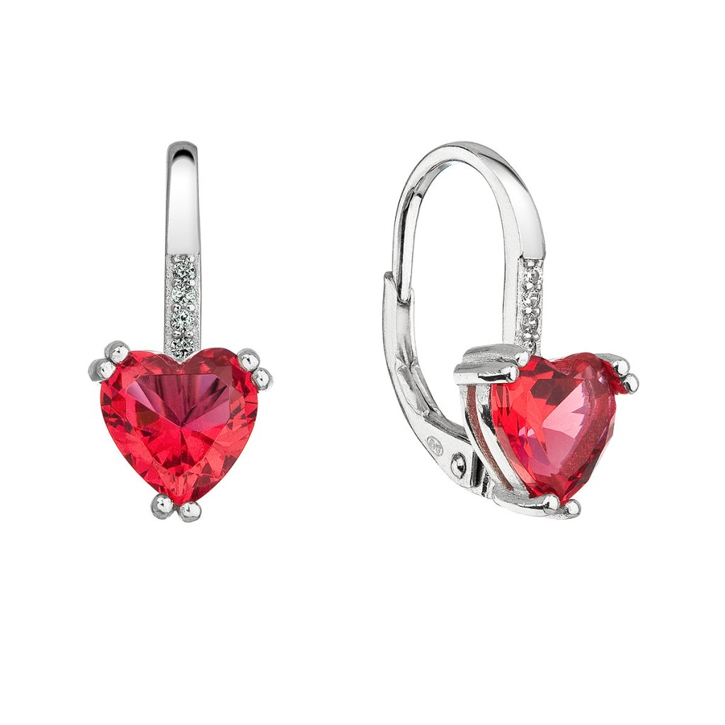 Strieborné náušnice visiace so zirkónmi ružové srdiečko 11409.3 rose