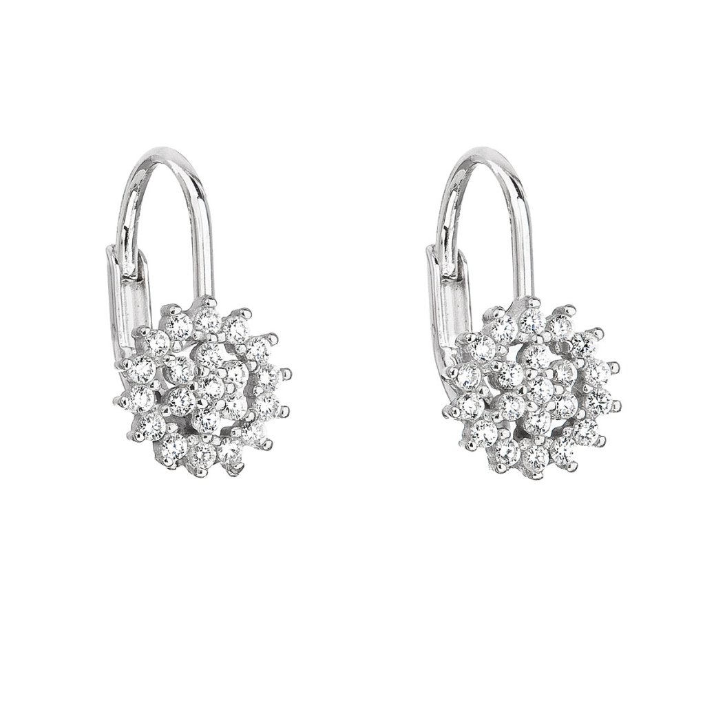Strieborné náušnice visiace so zirkónom biela kvietka 11217.1