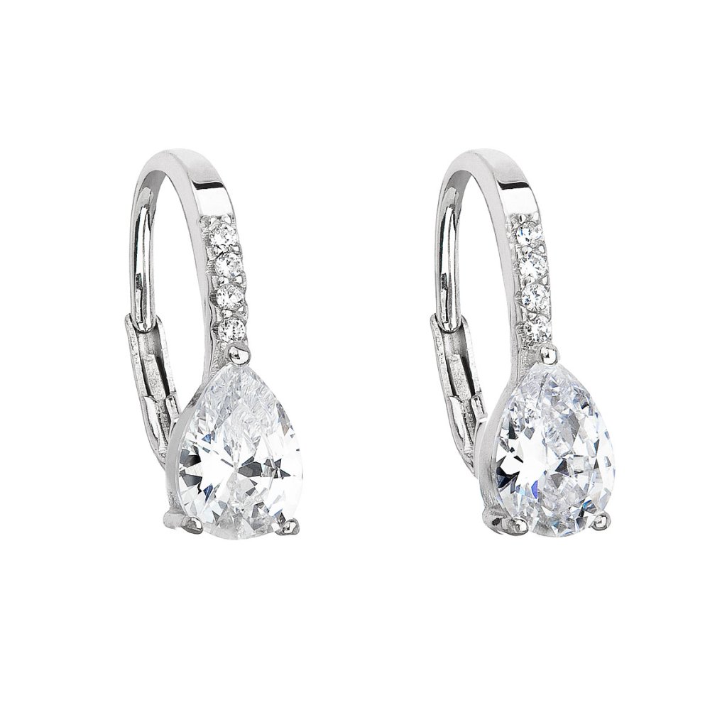 Strieborné náušnice visiace so zirkónom biela slza 11206.1