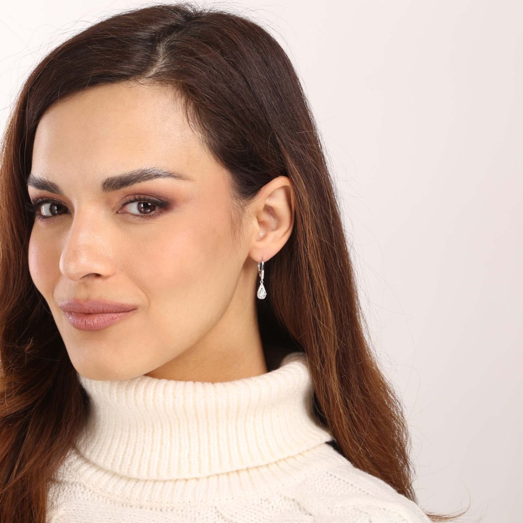 Hrejivý pocit šťastia z neopakovateľného zážitku, ktorý si budete často pripomínať. Slzičkové náušnice sú dokonalým šperkom pre takúto udalosť.Náušnice visiace 11305.1 sú vyrobené zo striebra o rýdzosti 925/1000 s povrchovou úpravou ródiom a sú zdobené zirkónmi v bielej farbe. Ródium vylepšuje vlastnosti striebra a chráni šperk proti nepekným zmenám vzhľadu. Slza je osadená veľkým zirkónom v bielej farbe a ešte ďalšími malými zirkónmi.