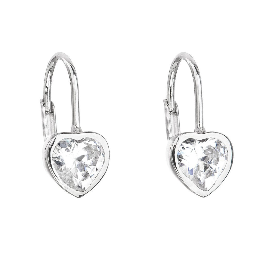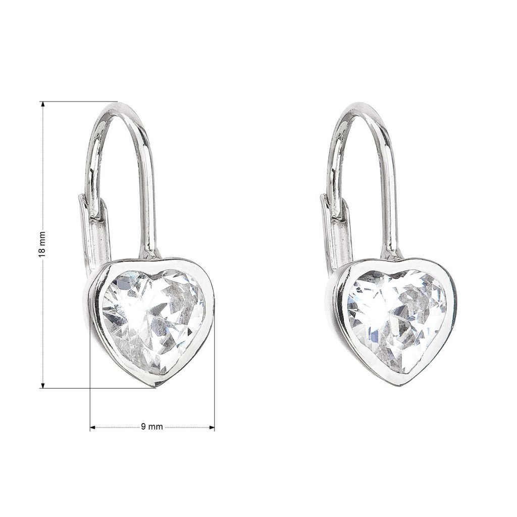 Strieborné náušnice visiace so zirkónom biele srdce 11185.1