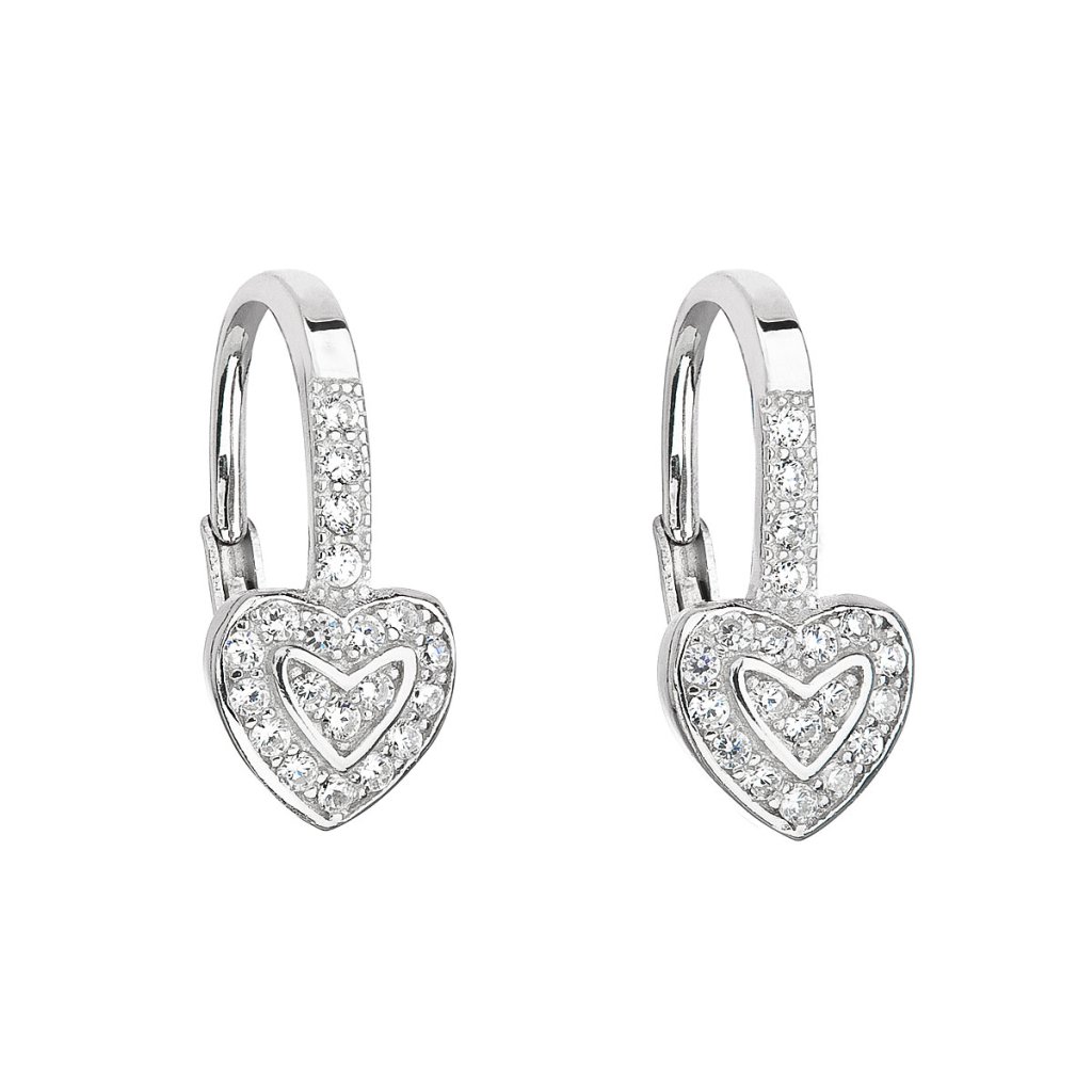 Strieborné náušnice visiace so zirkónom biele srdce 11189.1