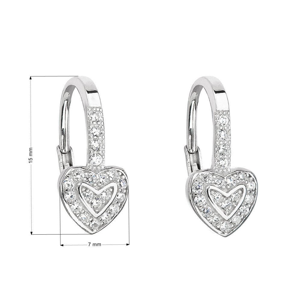 Parametre strieborných visiacich náušníc so zirkónom biele srdce 11189.1