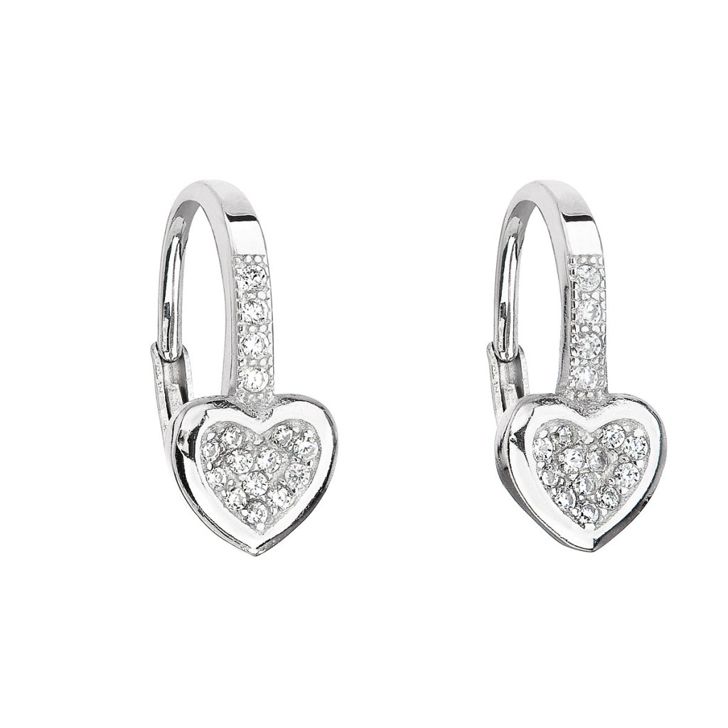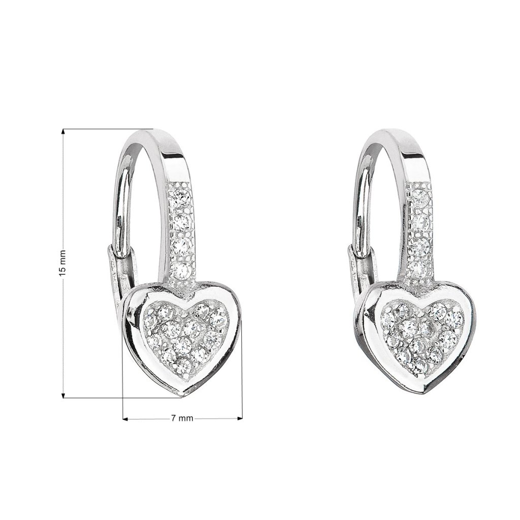 Strieborné náušnice visiace so zirkónom biele srdce 11194.1