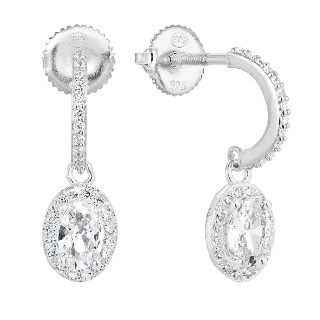 Strieborné náušnice visiace so zirkónom biely ovál 11228.1