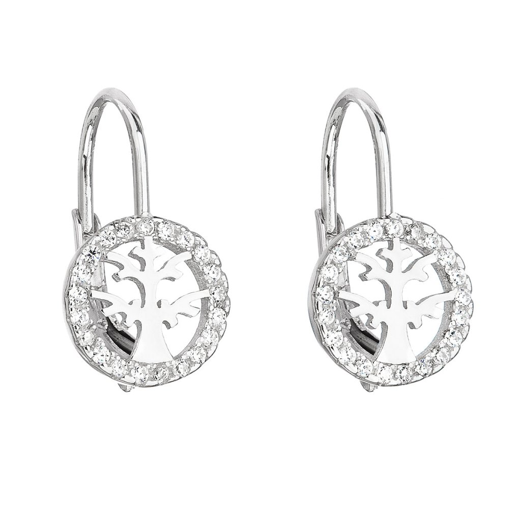 Strieborné náušnice visiace so zirkónom biely strom 11181.1