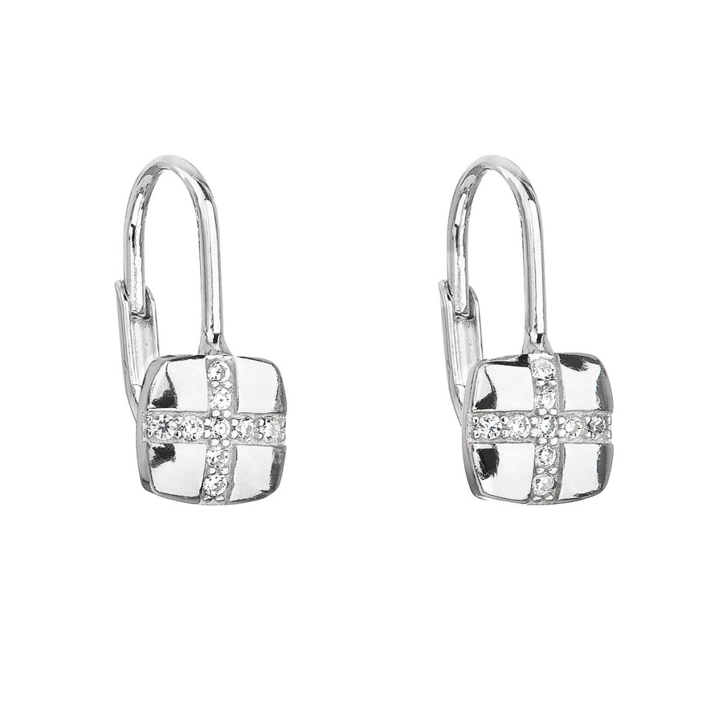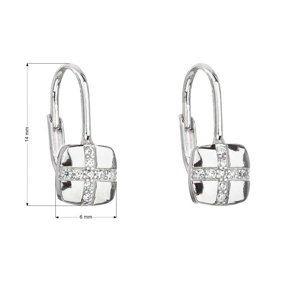 Strieborné náušnice visiace so zirkónom biely štvorec 11210.1