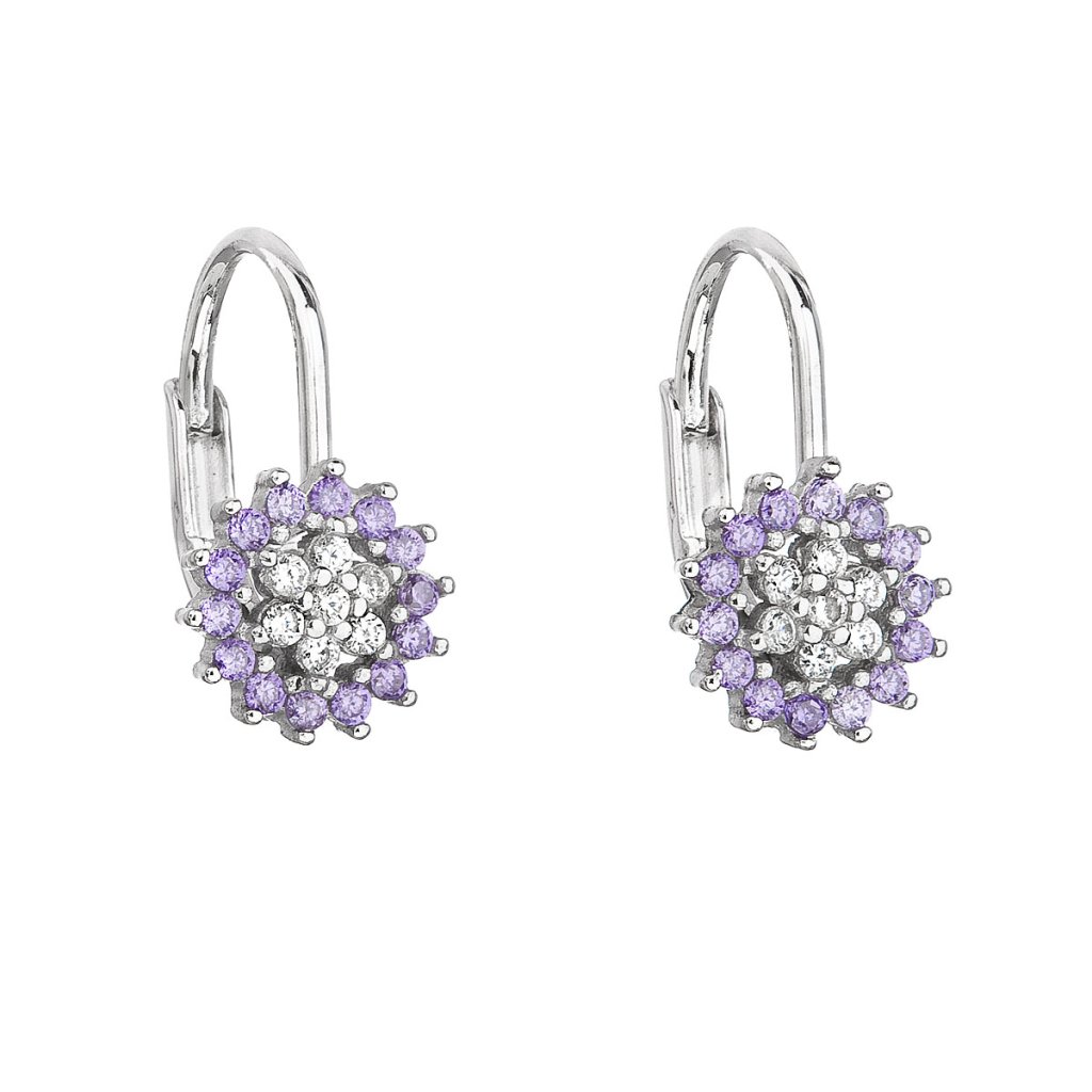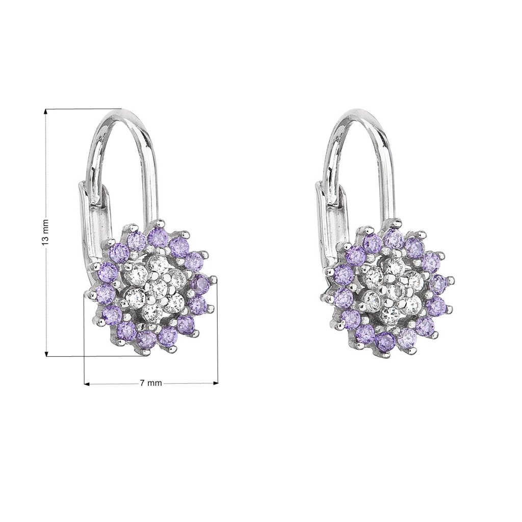 Strieborné náušnice visiace so zirkónom fialová kvietka 11217.3