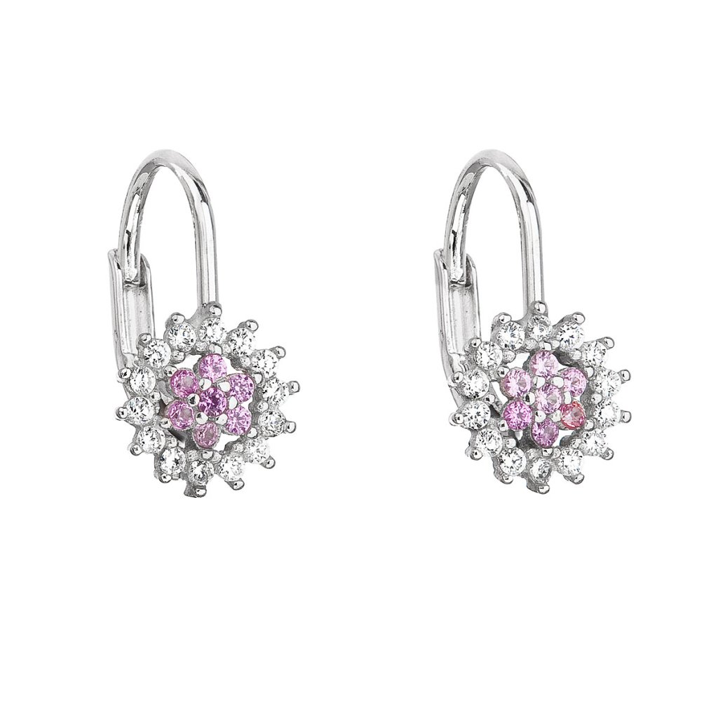 Strieborné náušnice visiace so zirkónom ružová kvietka 11217.3