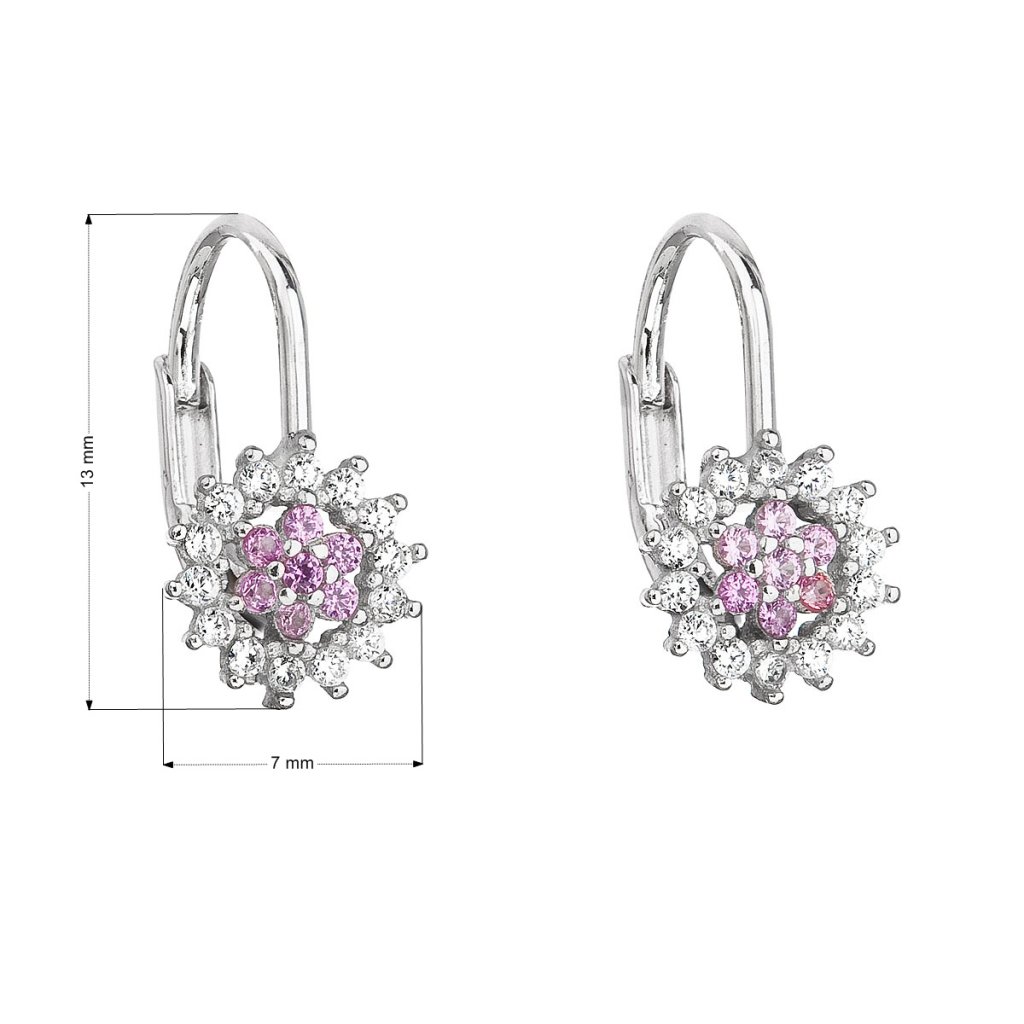 Rozkošné visiace náušnice v jednoduchej kombinácii striebra, bieleho a ružového zirkónu. Tvar náušníc pripomína jemný kvet alebo vločku. Sú malé a tak sú vhodné hlavne pre deti.Náušnice 11217.3 sa vyrábajú zo striebra rýdzosti 925/1000 . Na povrchu je nanesené ródium. Náušnice chránia pred nežiaducim černením i žltnutím. Navyše sa nepoškriabu. Zapínanie náušníc je na klapku . Náušnice 11217.3 neobsahujú nikel, čo ocenia hlavne alergici.