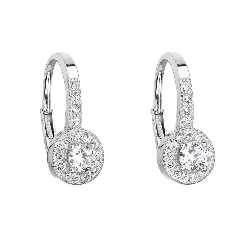 Strieborné náušnice visiace so zirkónom v bielej farbe 11198.1