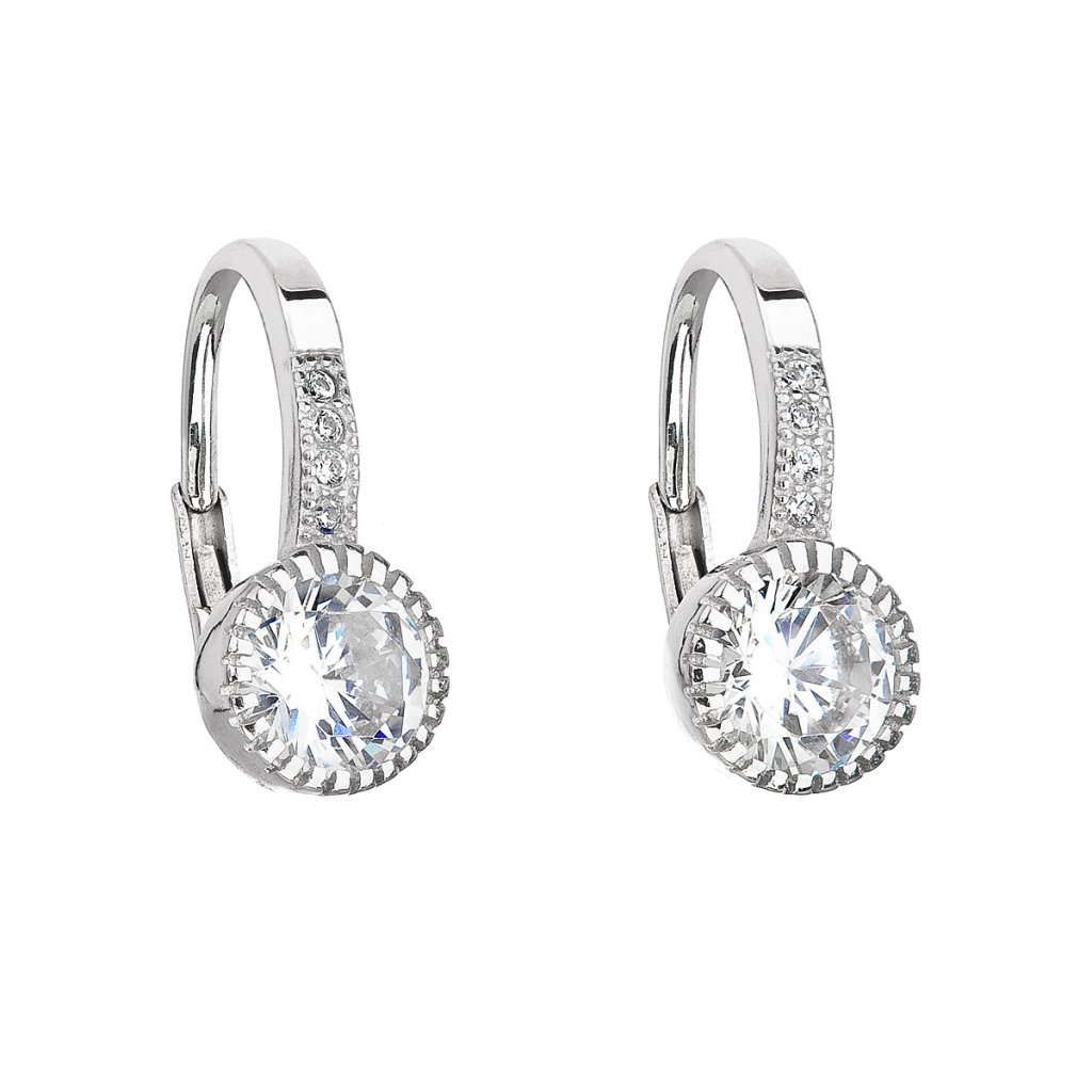 Strieborné náušnice visiace so zirkónom v bielej farbe 11201.1