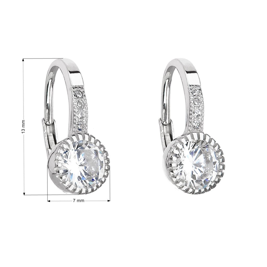 Parametre strieborných visiacich náušníc so zirkónom v bielej farbe 11201.1