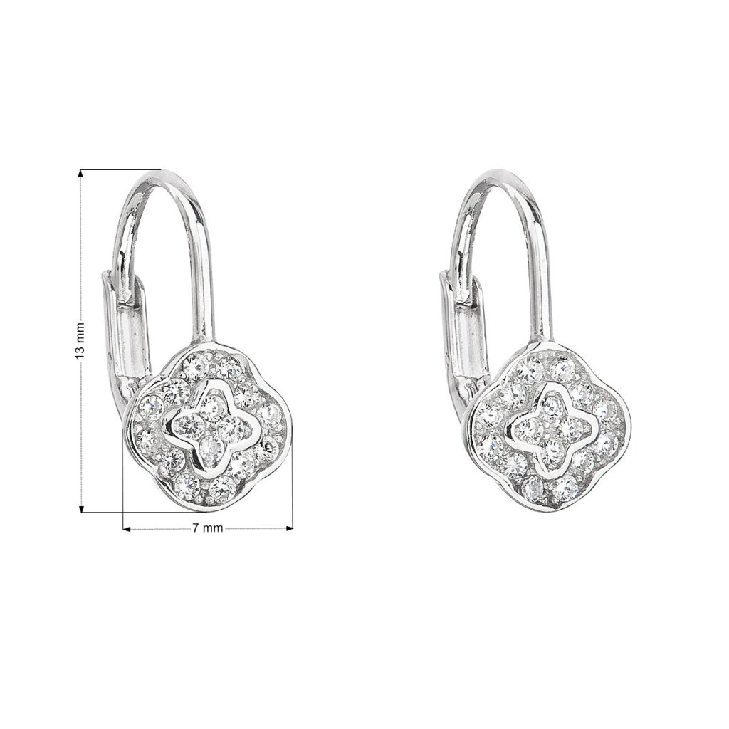 Parametre strieborných visiacich náušníc so zirkónom v bielej farbe 11211.1