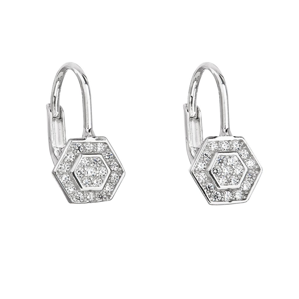 Parametre strieborných visiacich náušníc so zirkónom v bielej farbe 11213.1