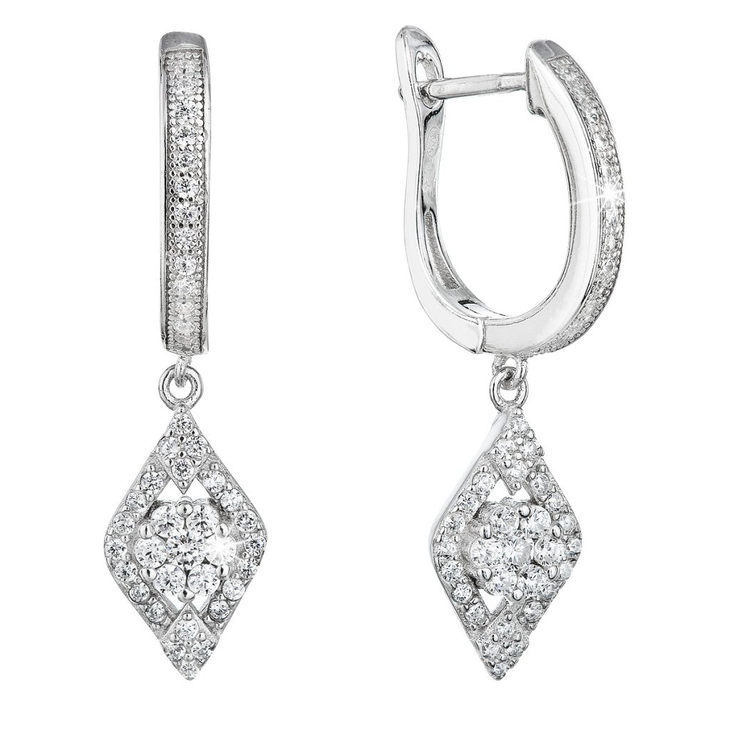 Strieborné náušnice visiace so zirkónom v bielej farbe 11333.1