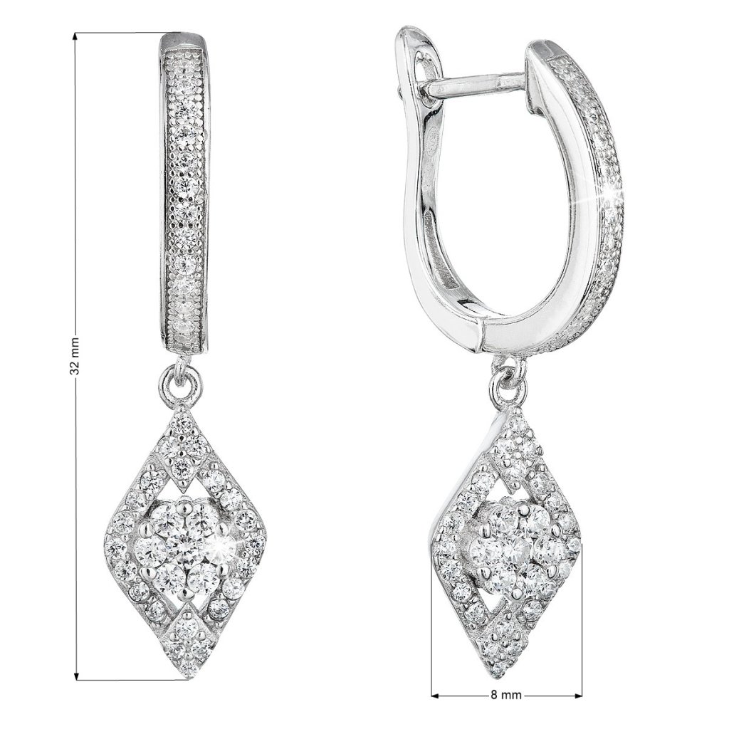 Parametre strieborných náušníc visiace so zirkónom v bielej farbe 11333.1