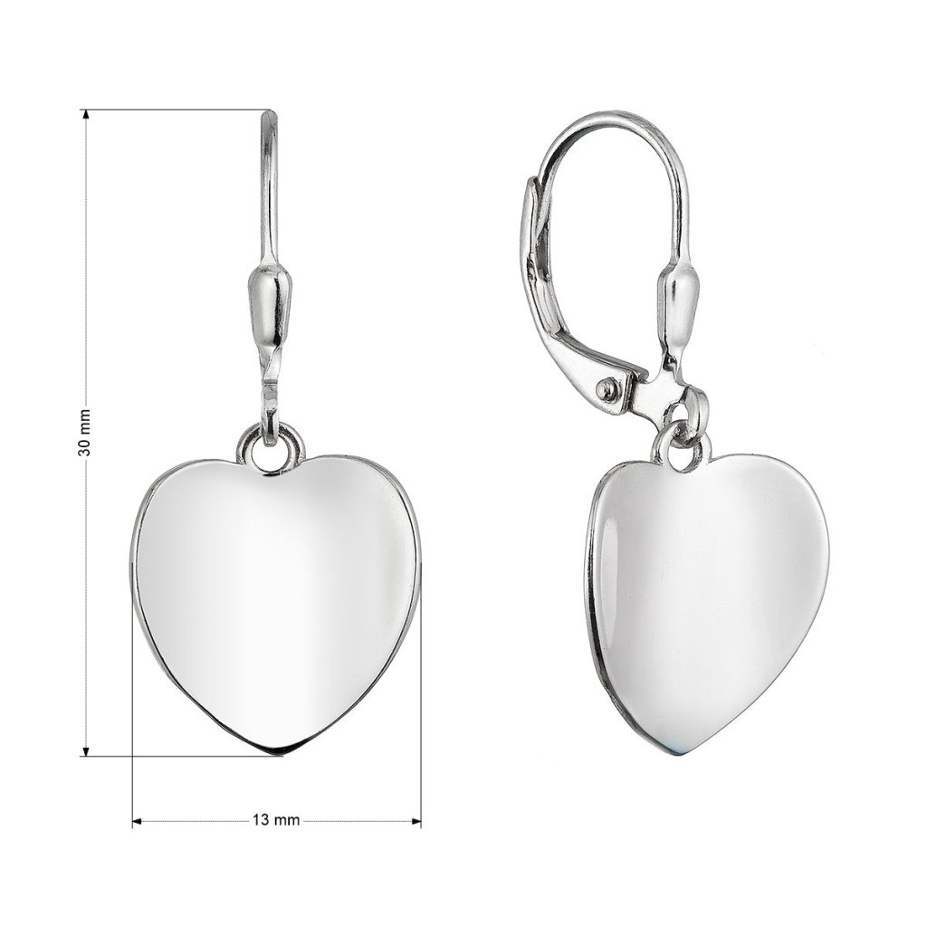 Tieto výrazné lesklé náušnice so zaveseným srdiečkom sú skvelým doplnkom pre každú ženu, ktorá hľadá moderný a štýlový šperk.Náušnice sú vyrobené zo striebra o rýdzosti 925/1000 a sú opatrené vrstvou ródia , ktorá šperk ochráni pred sčernením, zožltnutím alebo poškriabaním. Zapínanie na klapku zaisťuje pohodlné nosenie po celý deň.