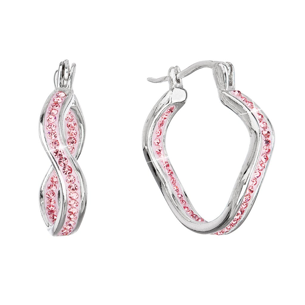 Strieborné náušnice vlnkové kruhy s kryštálmi Preciosa ružové 31219.3 lt.rose