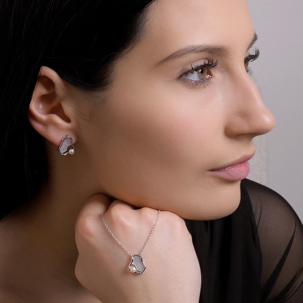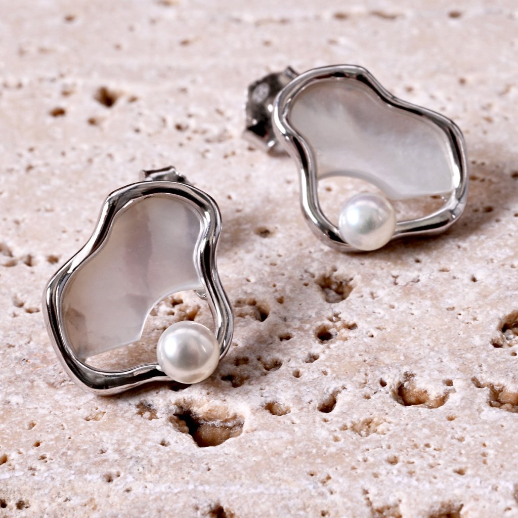 Strieborné nepravidelné náušnice s riečnou perlou 21120.1