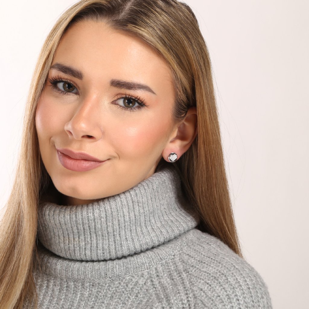 Objavte pôvab našich strieborných náušníc 11553.1, kde sa v objatí trblietavých zirkónov ukrýva nežné srdce. Minimalistické kôstky z rhodiovaného striebra rýdzosti 925/1000 sú ako malé súhvezdia, ktoré rozžiaria váš každý deň. Drobné kryštály vytvárajú romantický vzor srdiečka, ktorý rozpráva príbeh elegancie a nehy. Dokonale spracované detaily a pohodlné zapínanie na puzete zaistí, že sa tieto náušnice stanú vašim obľúbeným šperkom pre každú príležitosť. A vďaka antialergénnemu prevedeniu bez niklu si ich môžete užívať bez obáv.
