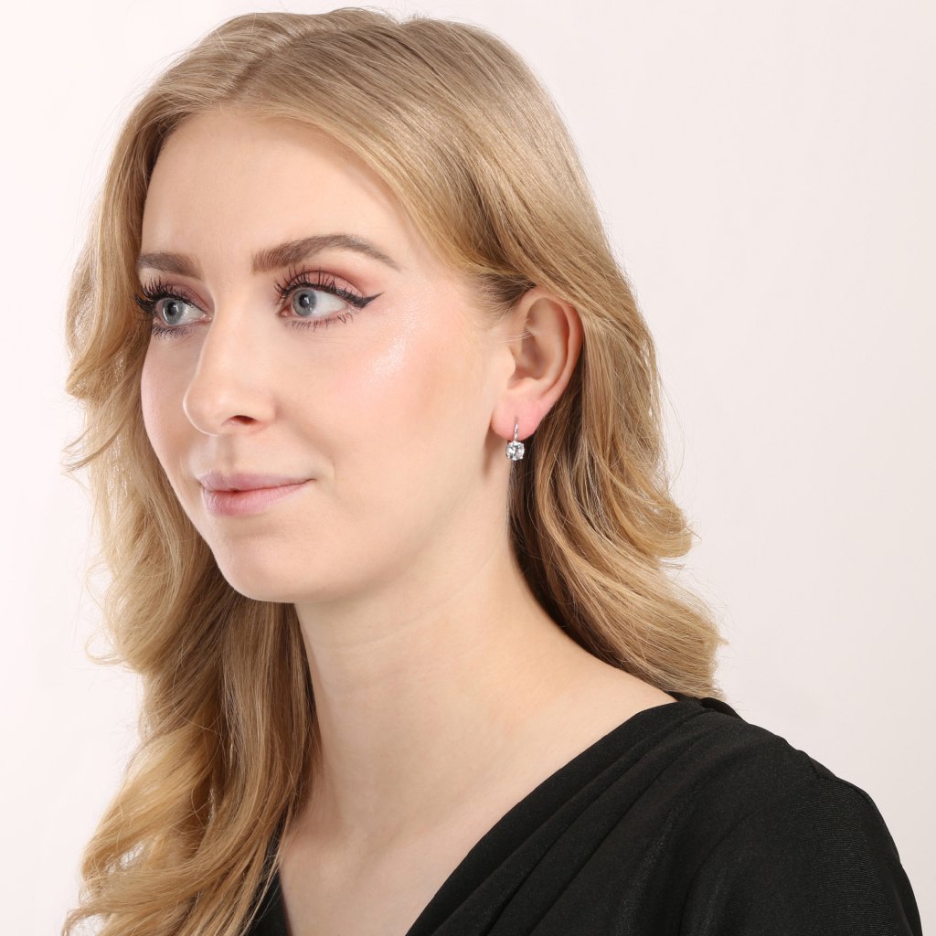 Náušnice sú zdobené kryštálovým zirkónom uprostred, ktorý je obklopený strieborným rámčekom s prerušovane dierovaným vzorom v tvare obdĺžnikov. Náušnice majú praktické zapínanie na klapku , ktoré zaisťuje pohodlné a bezpečné nosenie. Sú ideálnym darčekom alebo elegantným doplnkom pre špeciálne príležitosti