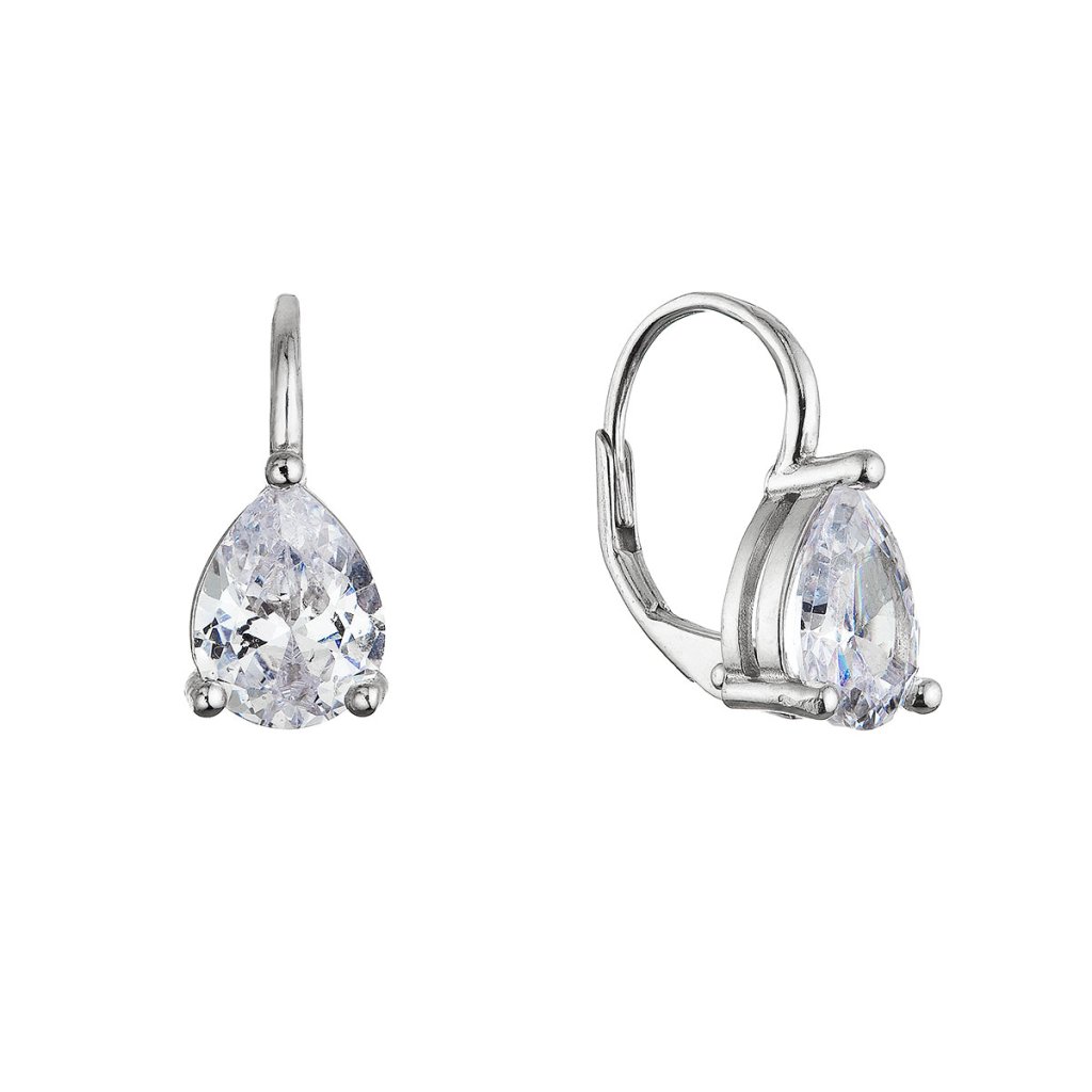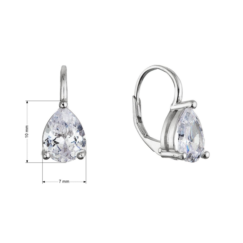 Strieborné visiace náušnice 11643.1 s rýdzosťou 925/1000 a ródiovou úpravou zaujmú svojim elegantným dizajnom v tvare kvapky, ktorý pôsobí jemne a zároveň výrazne. Dominantou každej náušnice je číry zirkón v brúsení kvapky, ktorý je precízne zasadený do stredu a septembra čistým leskom. Zaujímavým detailom sú tri kovové výstupky umiestnené za kameňom, ktoré nielenže dodávajú šperku jedinečnú plasticitu, ale zároveň zaisťujú optické zvýraznenie samotného zirkónu.