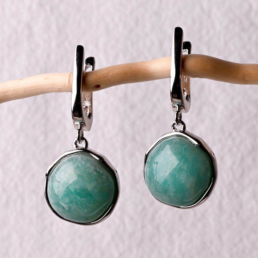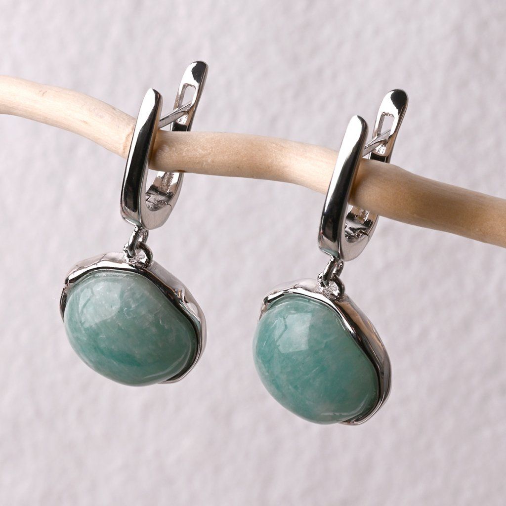 Strieborné visiace náušnice s amazonitom 11735.3