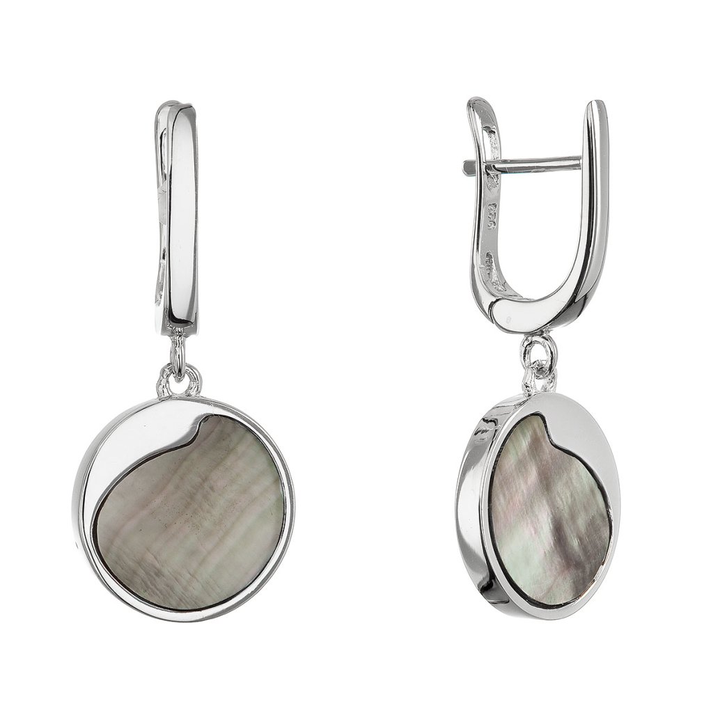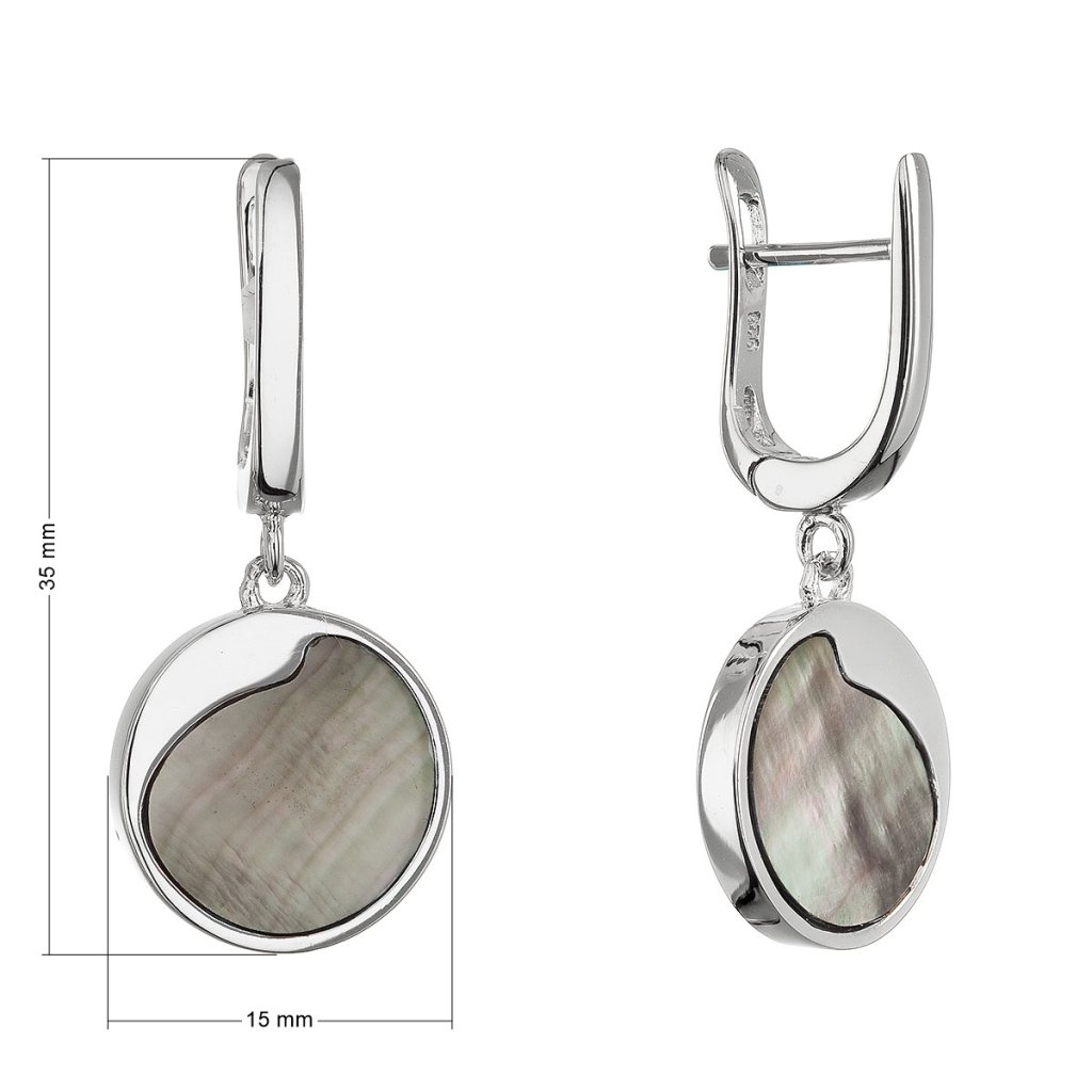 Náušnice sú vyrobené zo striebra tej najvyššej kvality rýdzosti 925/1000, dokonale chráneného ródiovou úpravou. Rhodiovaný povrch nielen chráni šperk pred oxidáciou, ale zaisťuje aj jeho neprekonateľný lesk a odolnosť proti poškriabaniu. Jemné koliesko s čiernou perleťou je decentne ozvláštnené originálnym strieborným výkrojom, ktorý dodáva šperku jedinečný charakter. Zapínanie na ruský patent zaručuje spoľahlivé a bezpečné nosenie.